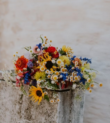 - Zomerbruiloft - Korenbloemen, ridderspoor en margrieten geven een speels en kleurrijk effect.