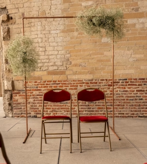 - Herfstbruiloft - Dieprode anthuriums en koperkleurige chrysanten voor een rijke, monochrome look.