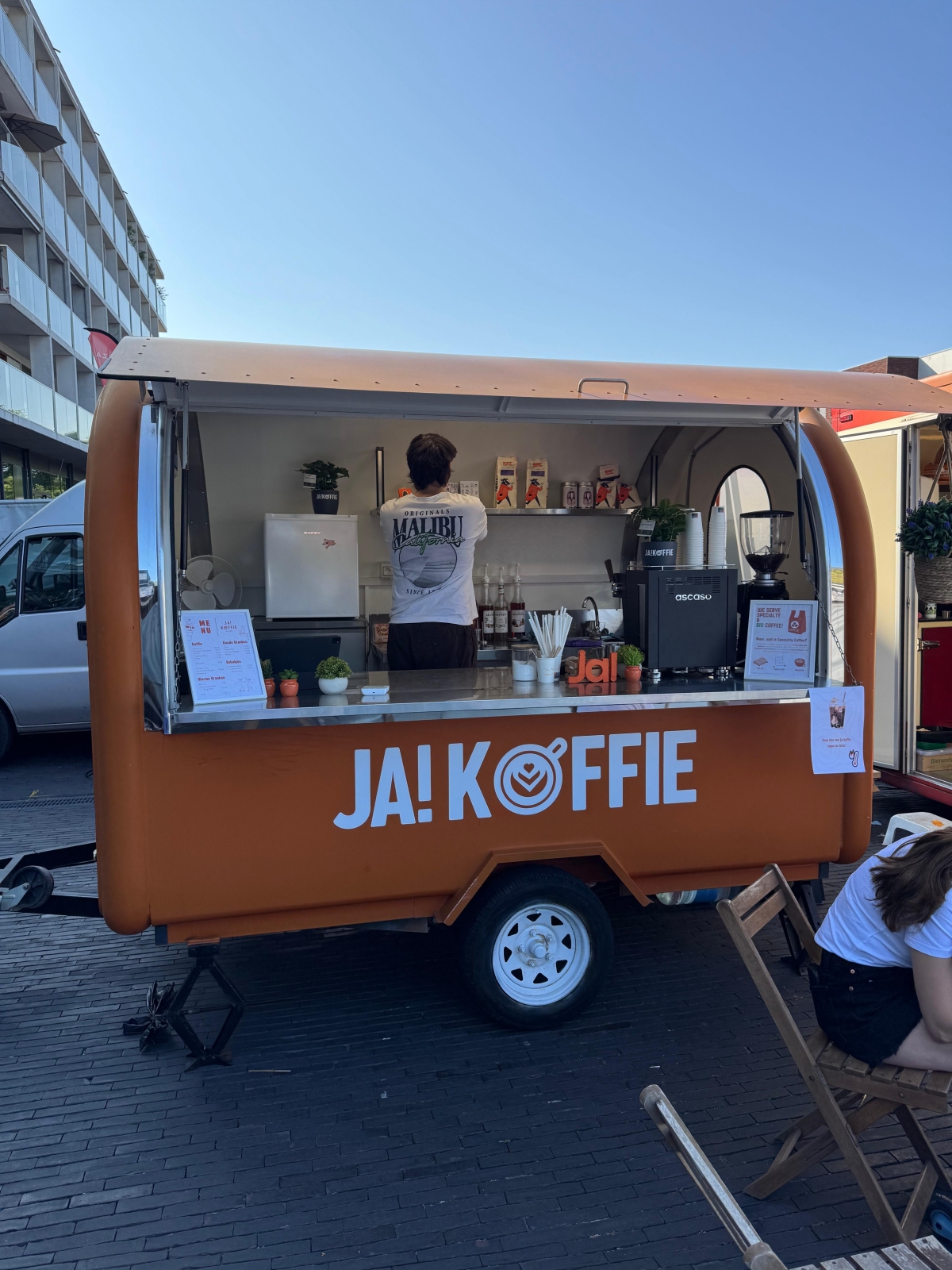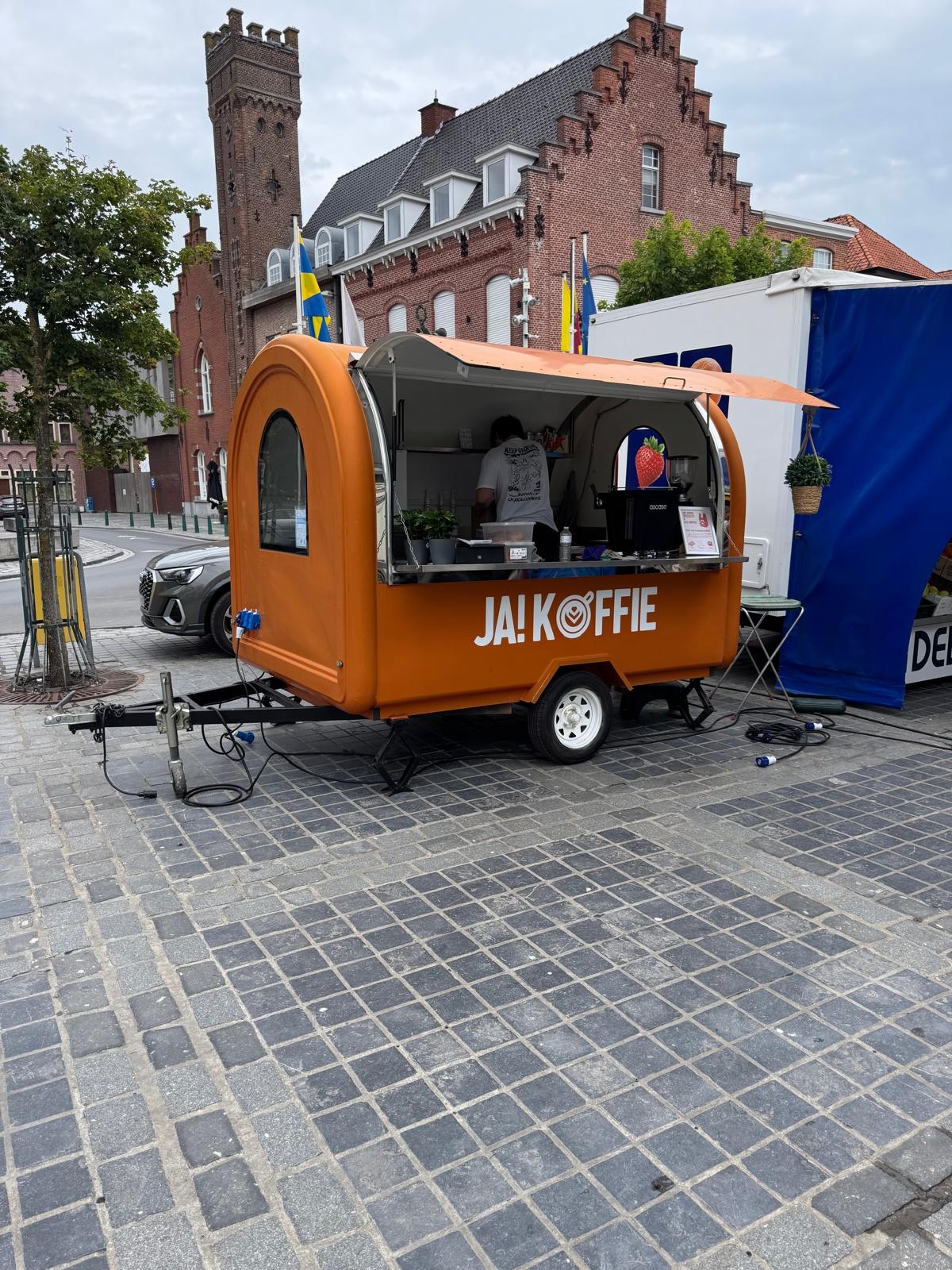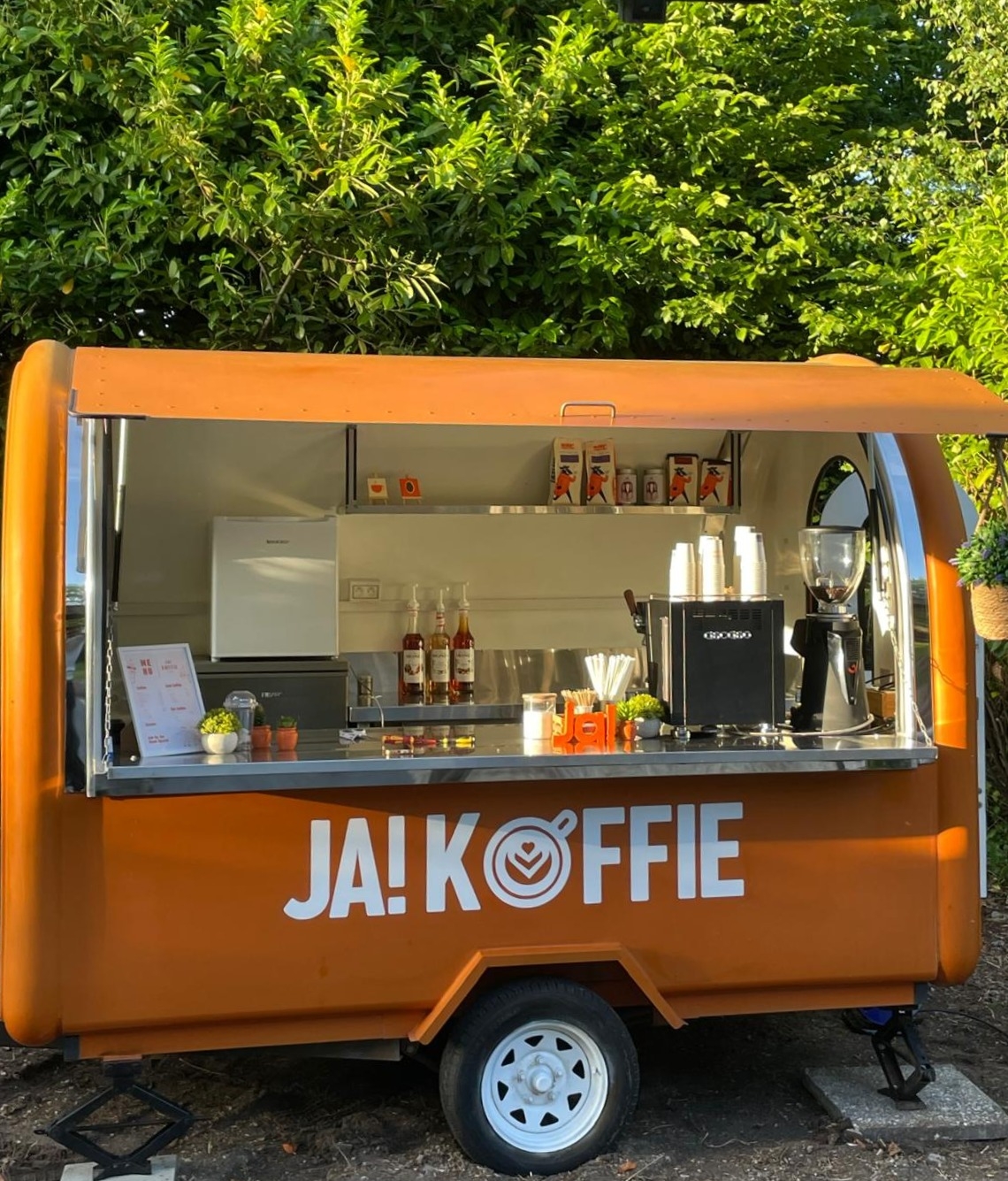 Qua opstelling zijn we flexibel inzetbaar. Voor binnen- en buitengebruik werken we met een mobiele koffiebar, stijlvol en makkelijk verplaatsbaar. Voor outdoor events voorzien we onze oranje koffietrailer mee, een echte eyecatcher die meteen sfeer creeërt op festivals, bedrijfsfeesten en privé-events.