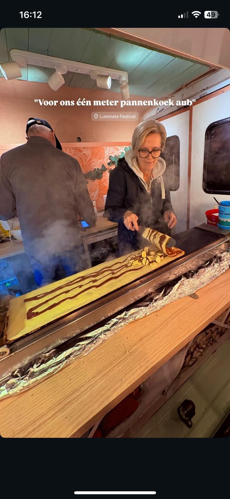 Maak je evenement onvergetelijk met Crêpes per Meter/Halve Meter. Onze foodtruck biedt een unieke culinaire beleving met crêpes die à la minute worden gebakken, helemaal naar jouw wensen. Kies voor een indrukwekkende crêpe van een meter of halve meter, met een ruime keuze aan toppings, zowel zoet als hartig – perfect voor jong en oud!