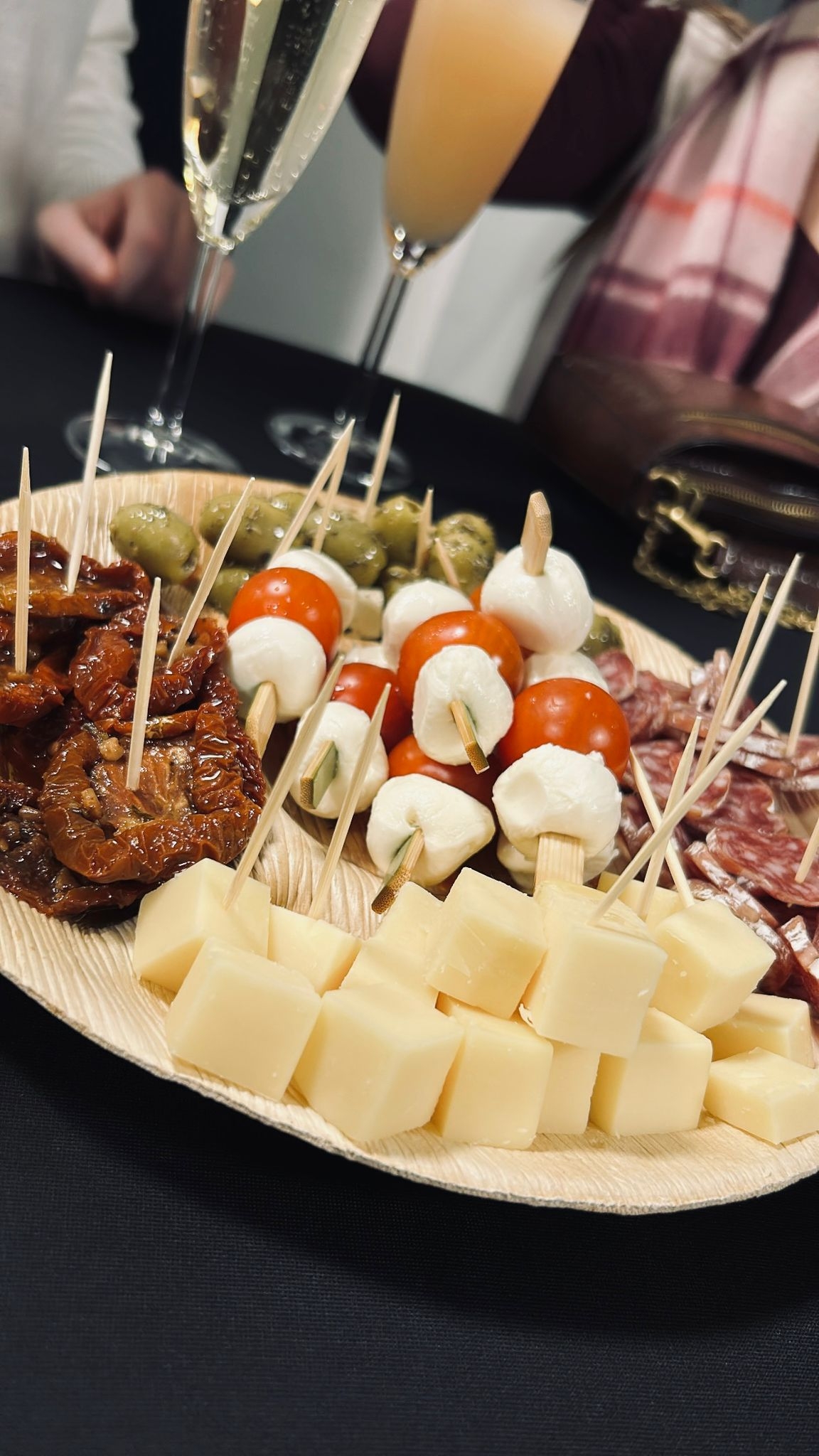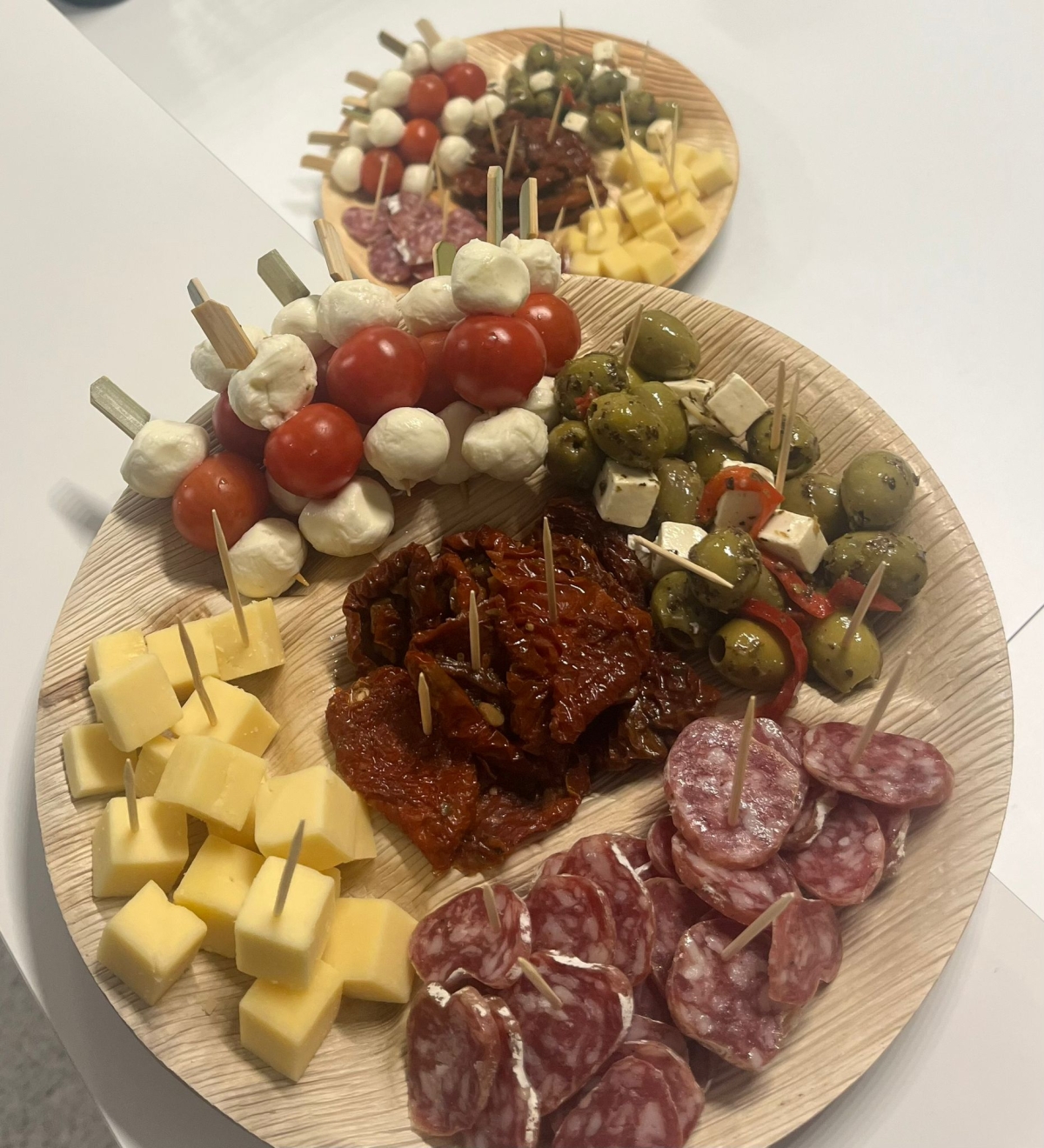 - Tapas als voorgerecht - Tapasschotel voor 8 personen (€ 7 p.p.): Caprese spiesjes, olijven, kazen, charcuterie, grissini met dip en brood.