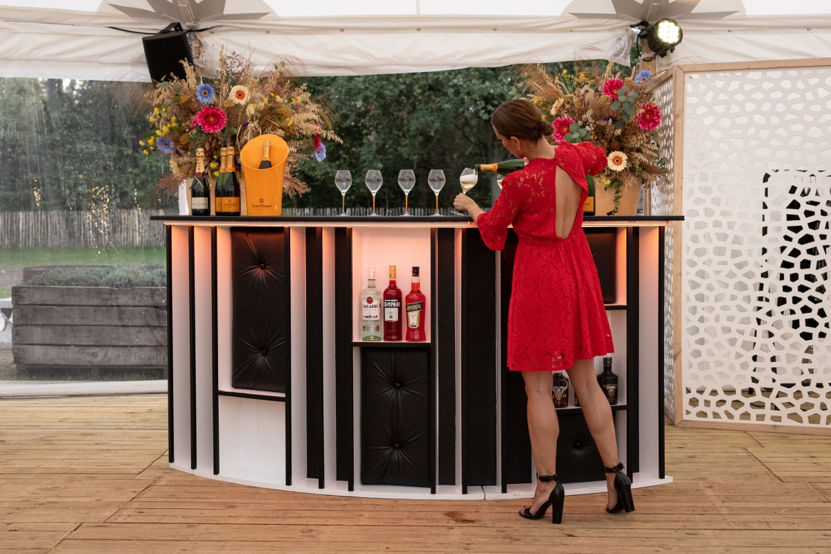 Wie zijn event nog sterker wil personaliseren, kan kiezen voor een gepersonaliseerde cocktailbar. Van champagne chique tot cocktail crazy: wij schenken op maat van je concept. Indien gewenst voorzien wij de bar van jouw logo op een LED-achterwand, perfect voor branding en visuele impact.