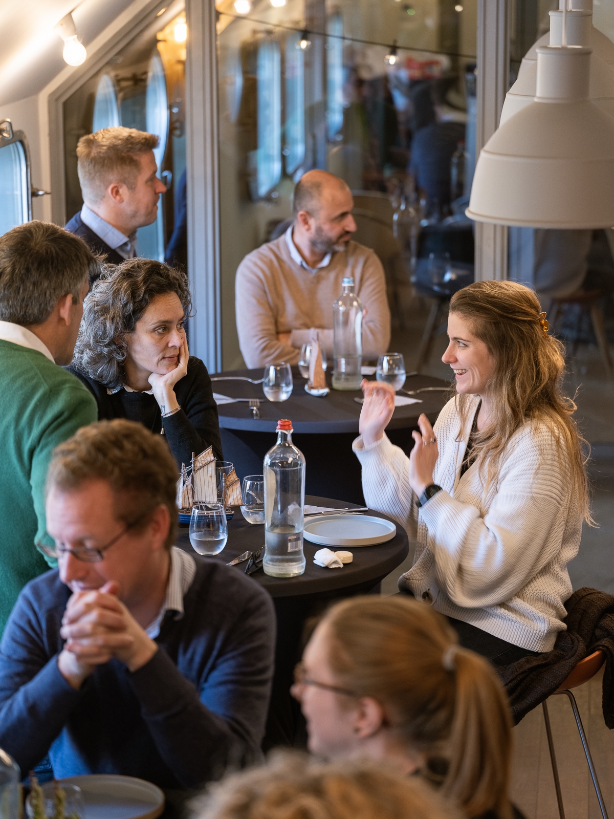 Kris en Birte bouwden hun vrachtschip om tot een heldere en inspirerende ruimte voor vergaderingen, teamwerking, events, feesten, opleidingen, ... Je kan er genieten van het zicht op het water en zijn bewoners (futen, eenden, zwanen, aalscholvers, jachteigenaars) en met een open minded brainstormen, vergaderen, teambuilden, of dineren in ons visrestaurant.