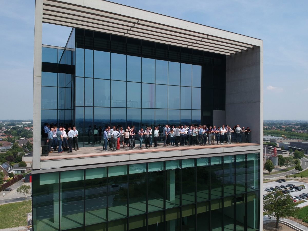 Het begint als een klein blokje dat je gasten zien verschijnen langs de autostrade. Tussen de auto's en bomen door valt het nog niet meteen op. Tot iemand wijst: "Is het daar dat we moeten zijn?" De toren groeit. Ondertussen speculeren ze over de zaal en het eten, en delen ze verhaaltjes over de aanwezigen. De feeststemming zwelt aan. Dan parkeren ze hun wagen, gooien ze hun deuren open en kijken ze tegelijk omhoog. "Amai." De verwondering neemt toe. Dan enkel nog de lift. Ping! De deuren schuiven open en ze staan aan het raam gekluisterd. Vanaf hier is alles nóg zoveel groter. Het uitzicht. Het moment. Jouw event.