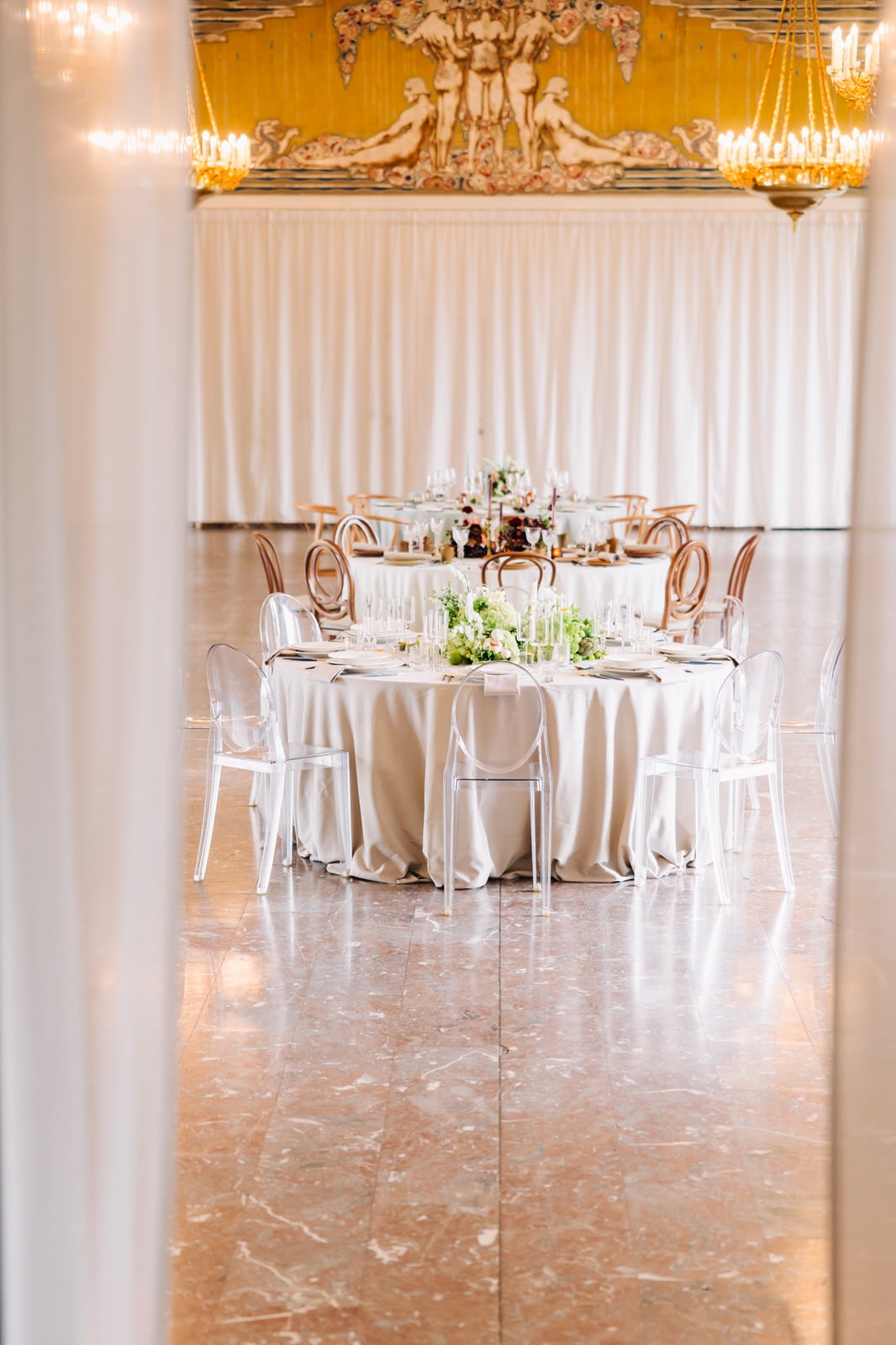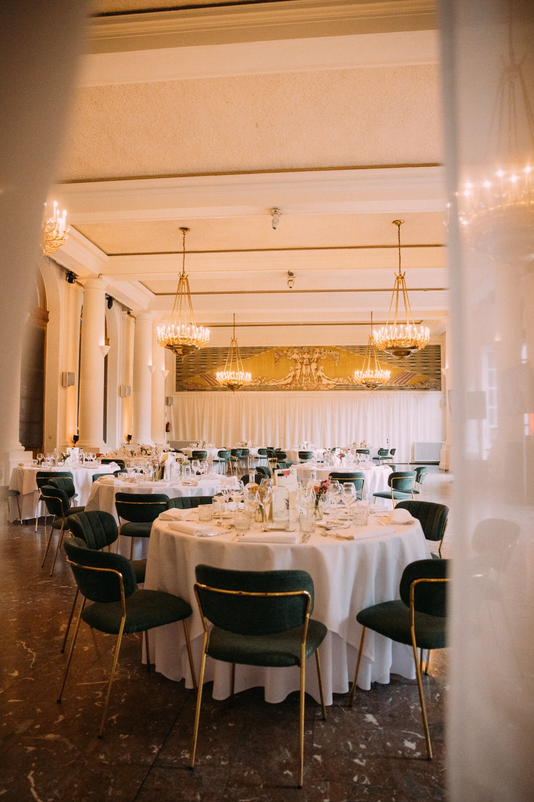 De Historische balzaal is een neoclassicistische pronkzaal, ontworpen door Alfred‑Philibert Aldrophe in 1897, en combineert monumentale zuilen met hoge plafonds voor een authentieke 19e‑eeuwse grandeur. Perfect voor belevingen op maat: van banketten tot 250 personen, recepties tot 400 genodigden en theateropstellingen tot