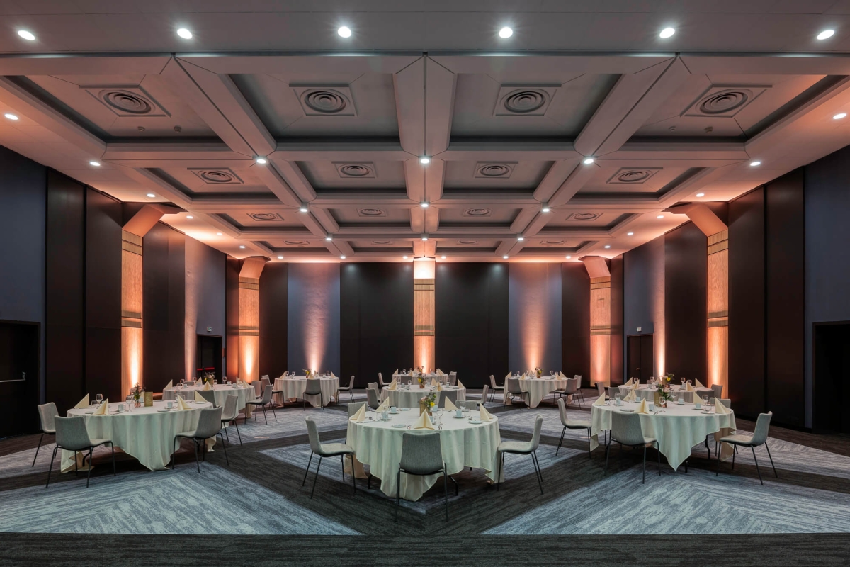 Het Mercure Antwerp City South hotel beschikt over 13 multifunctionele vergader- en feestzalen met een totale capaciteit tot 450 personen. De zalen zijn uitgerust met moderne audiovisuele apparatuur, zoals beamers, schermen en flipcharts. Er zijn diverse mogelijkheden, variërend van vergaderarrangementen tot de volledige planning en aankleding van uw evenement. De grootste zaal, Olympiade, biedt ruimte aan maximaal 450 personen, wat het een ideale locatie maakt voor grote conferenties en evenementen.
