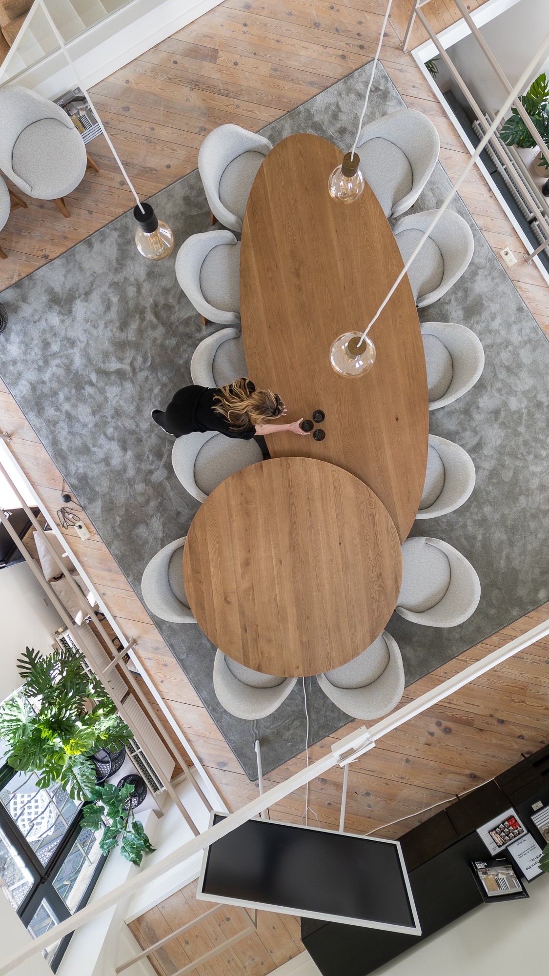 De bovenste verdieping werd omgevormd tot een elegante en rustige vergaderruimte, perfect voor kleinere teams die graag werken in een inspirerende setting weg van de drukte. Of je nu een strategische meeting plant, een pitch voorbereidt of een creatieve brainstorm organiseert: Furnitale biedt de ideale omkadering.