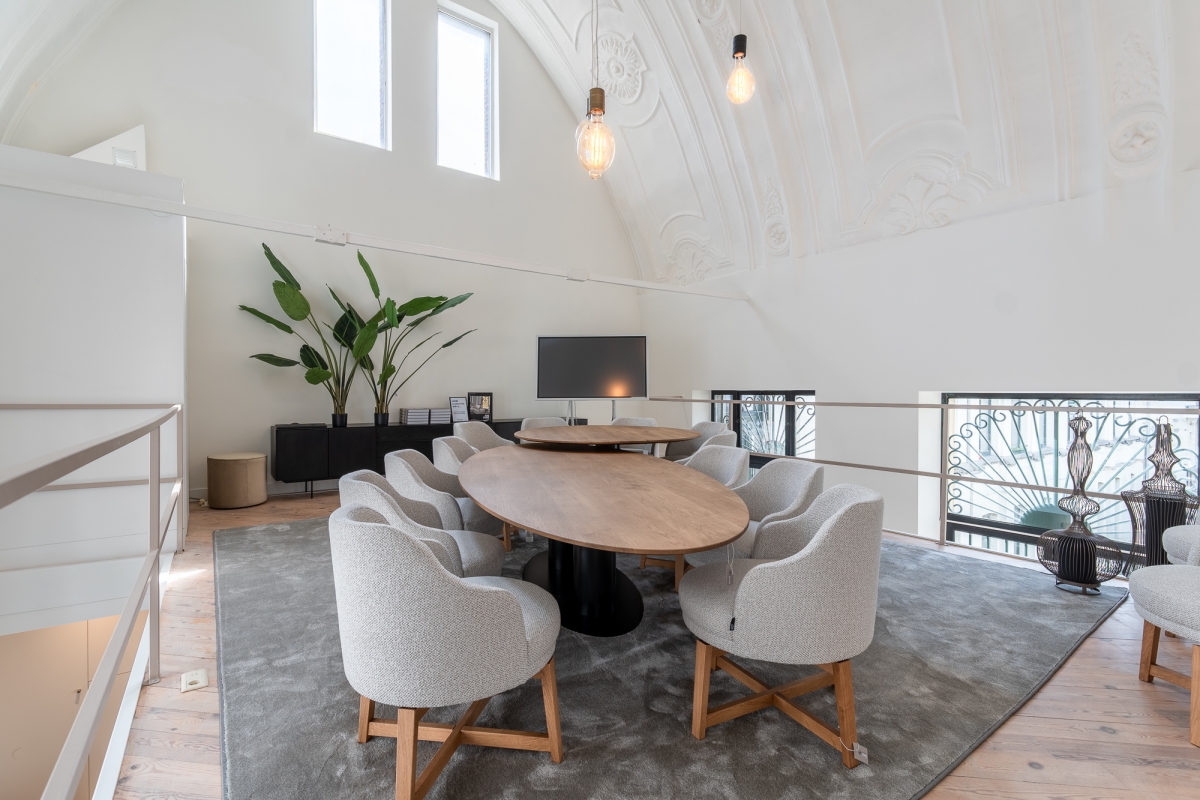 Furnitale bevindt zich in een 15de-eeuws historisch pand, oorspronkelijk een kapel, vandaag omgevormd tot een verfijnde meubelzaak met een uitgesproken karakter. De authentieke elementen – hoge gewelven, oude muren, warme lichtinval – vormen een prachtig contrast met de hedendaagse designmeubelen die zorgvuldig zijn geselecteerd. Deze setting ademt rust, esthetiek en klasse: de ideale voedingsbodem voor productieve vergaderingen en creatieve ideeën.