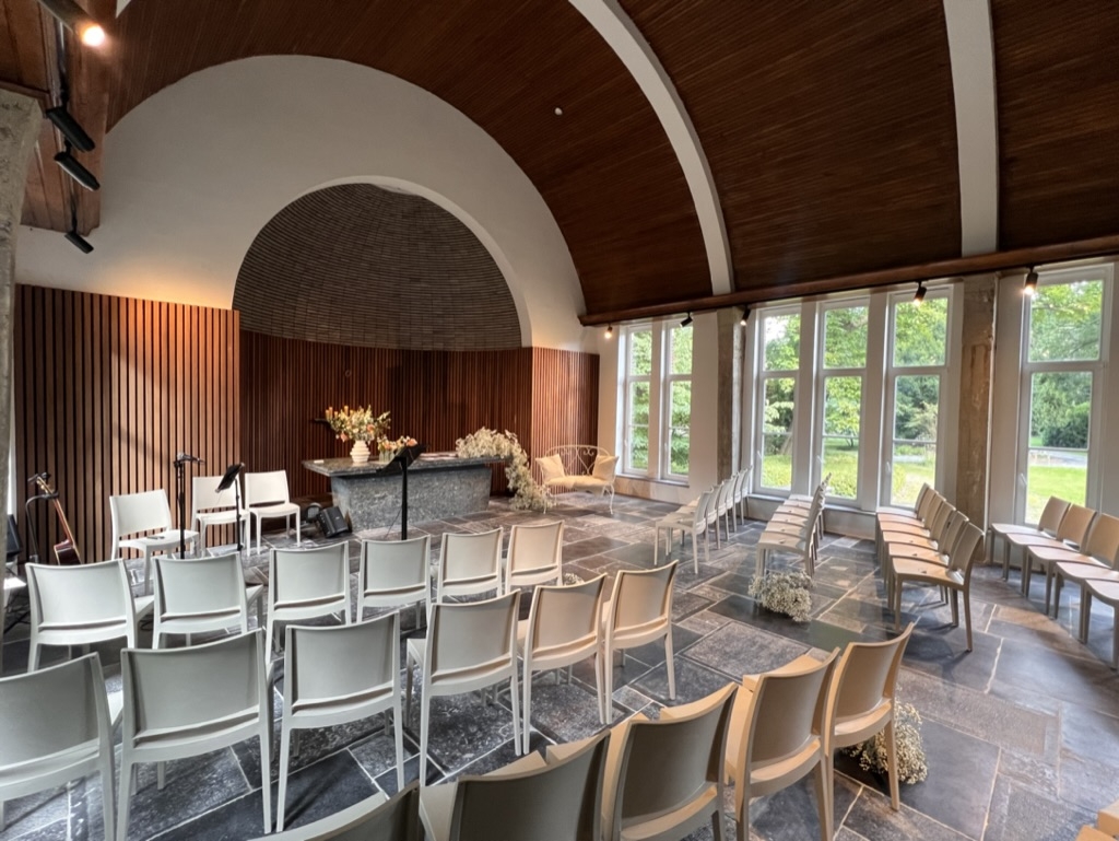 - Koffietafel [?] De mooie kloosterkapel (capaciteit 150 zittend) kan gebruikt worden voor uitvaarten en aansluitend kan er in het kasteel een koffietafel zijn.