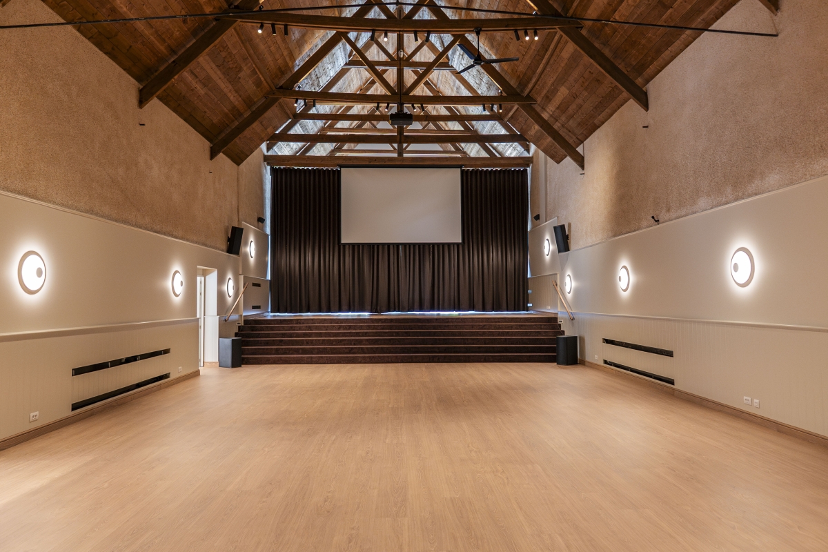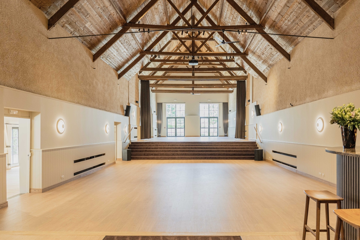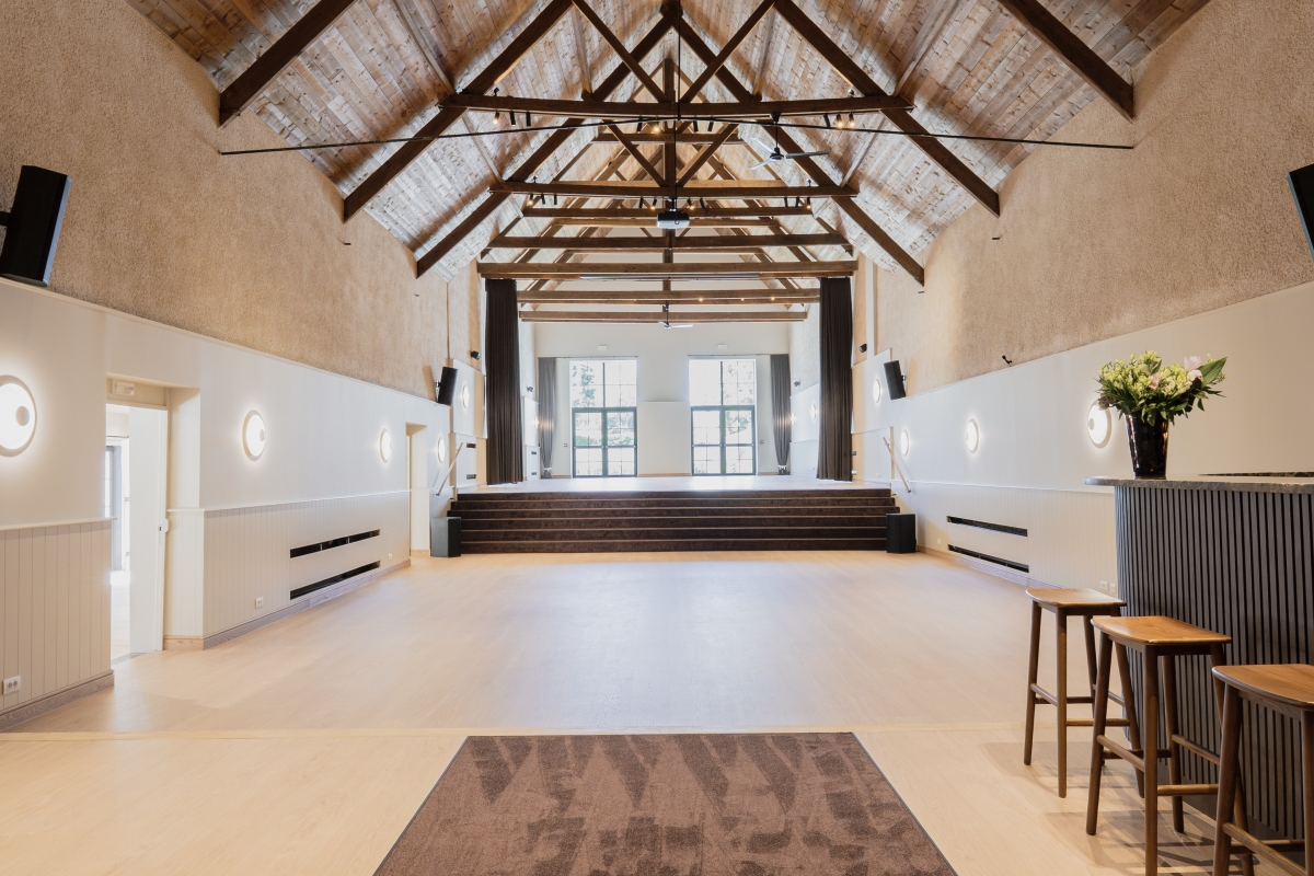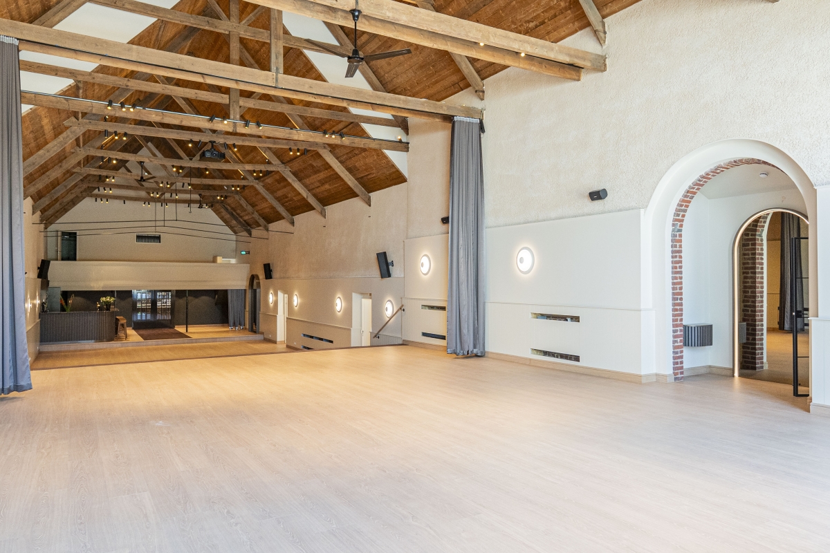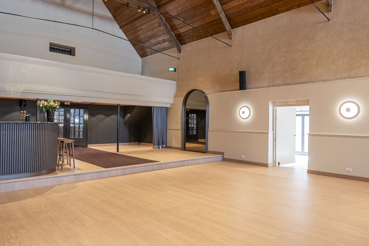Onze voormalige theater-, film- en concertzaal uit 1901 werd gerenoveerd tot een prachtige multifunctionele ruimte die vandaag de perfecte setting vormt voor stijlvolle bedrijfs- en privé-evenementen. De indrukwekkende open zaal van 250 m², met haar authentieke dakgebinte en een nokhoogte van 10 meter, straalt een unieke combinatie van karakter en grandeur uit. Aansluitend zorgt de sfeervolle orangerie van 60 m² voor extra flexibiliteit, terwijl de traiteurvriendelijke keuken van 30 m² elk evenement eenvoudig ondersteunt.
