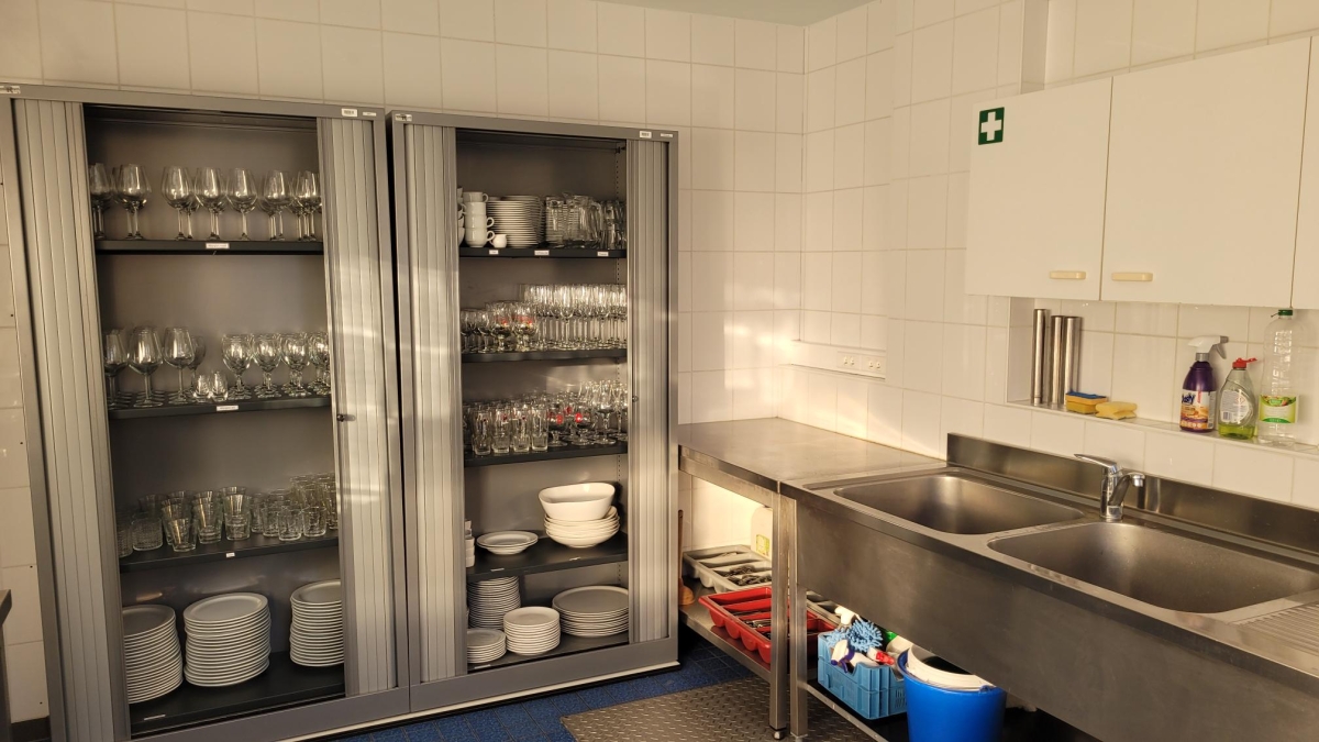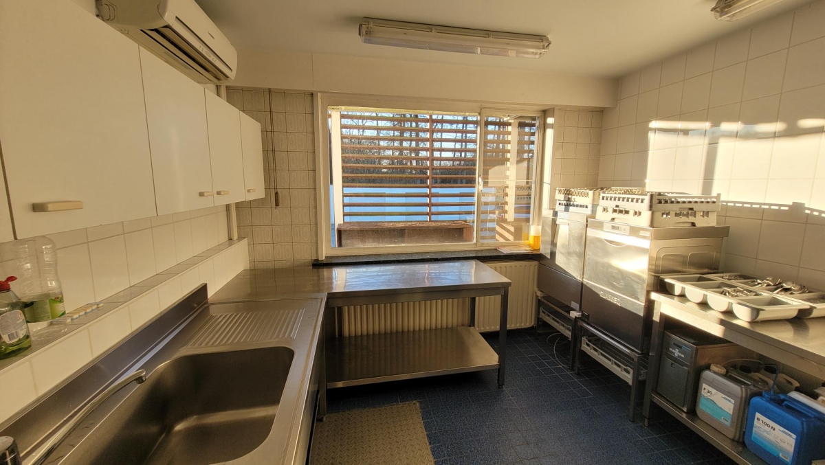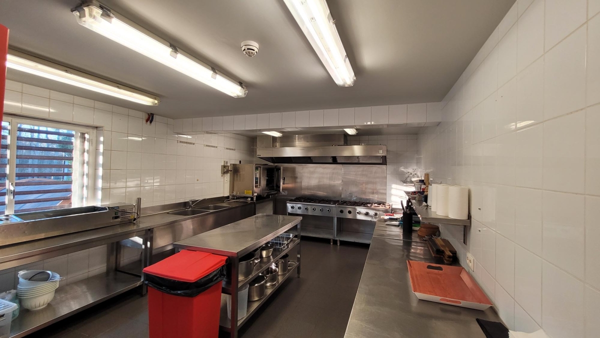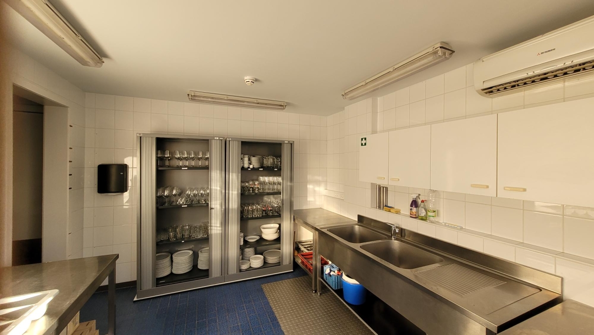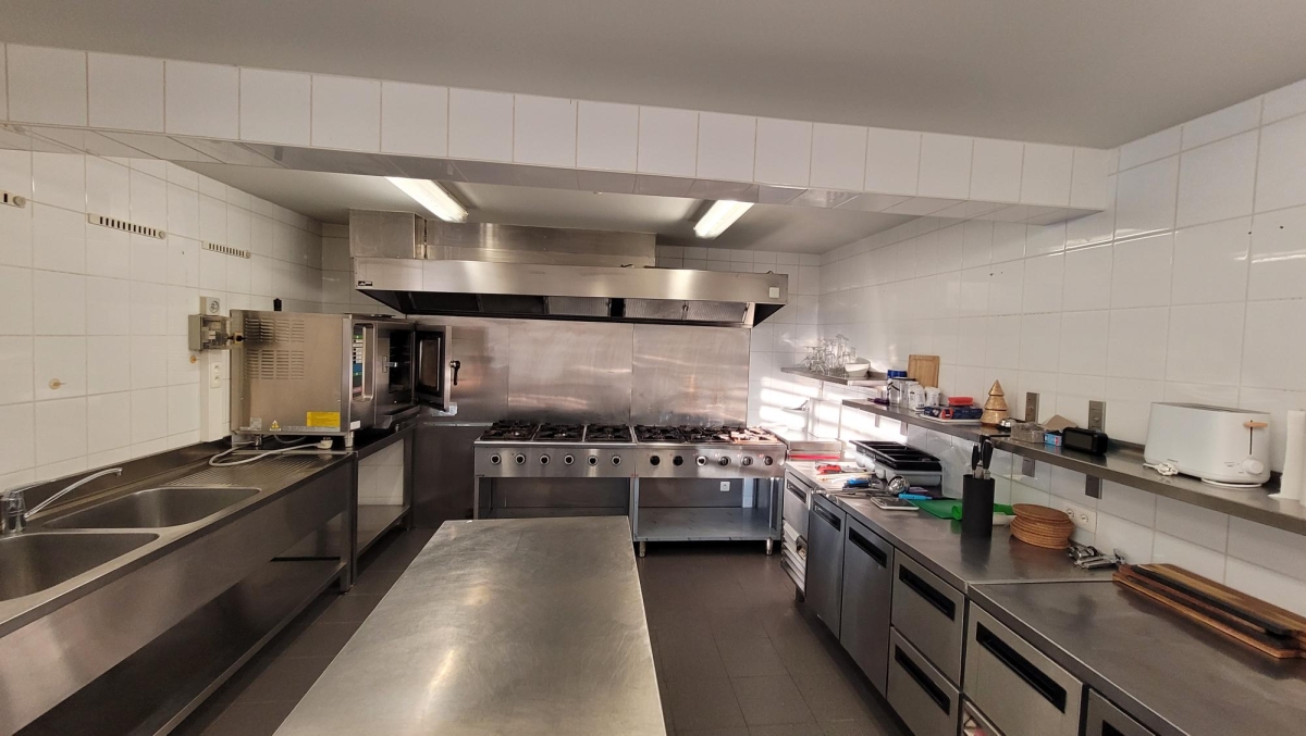 Er is een professionele keuken en bestek, borden, glazen,... zijn aanwezig.