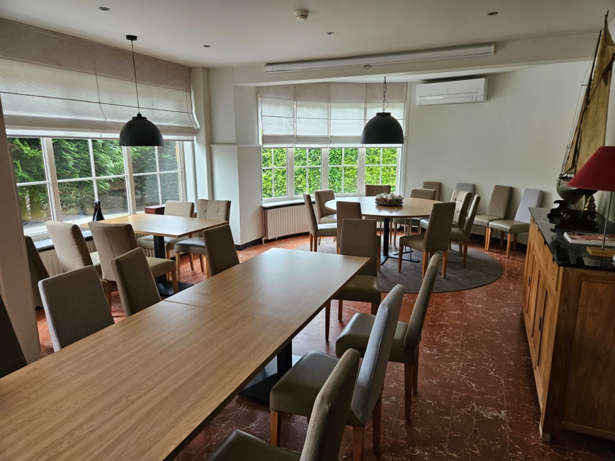 De zaal is geschikt voor maximum 50 personen. Een kleine afwijking is mogelijk op aanvraag.