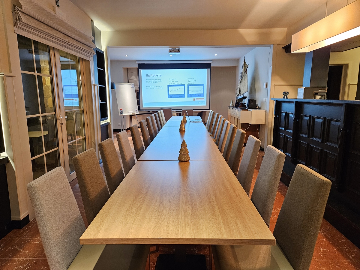 Voor vergaderingen zijn er ook alle faciliteiten zoals een flip-chart, beamer, projectiescherm,...