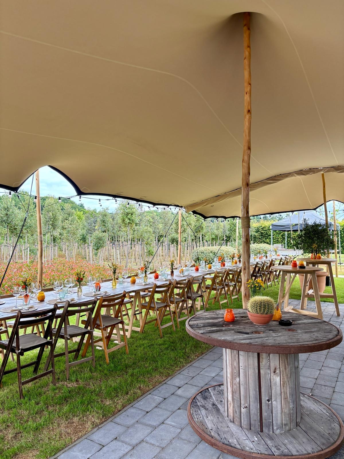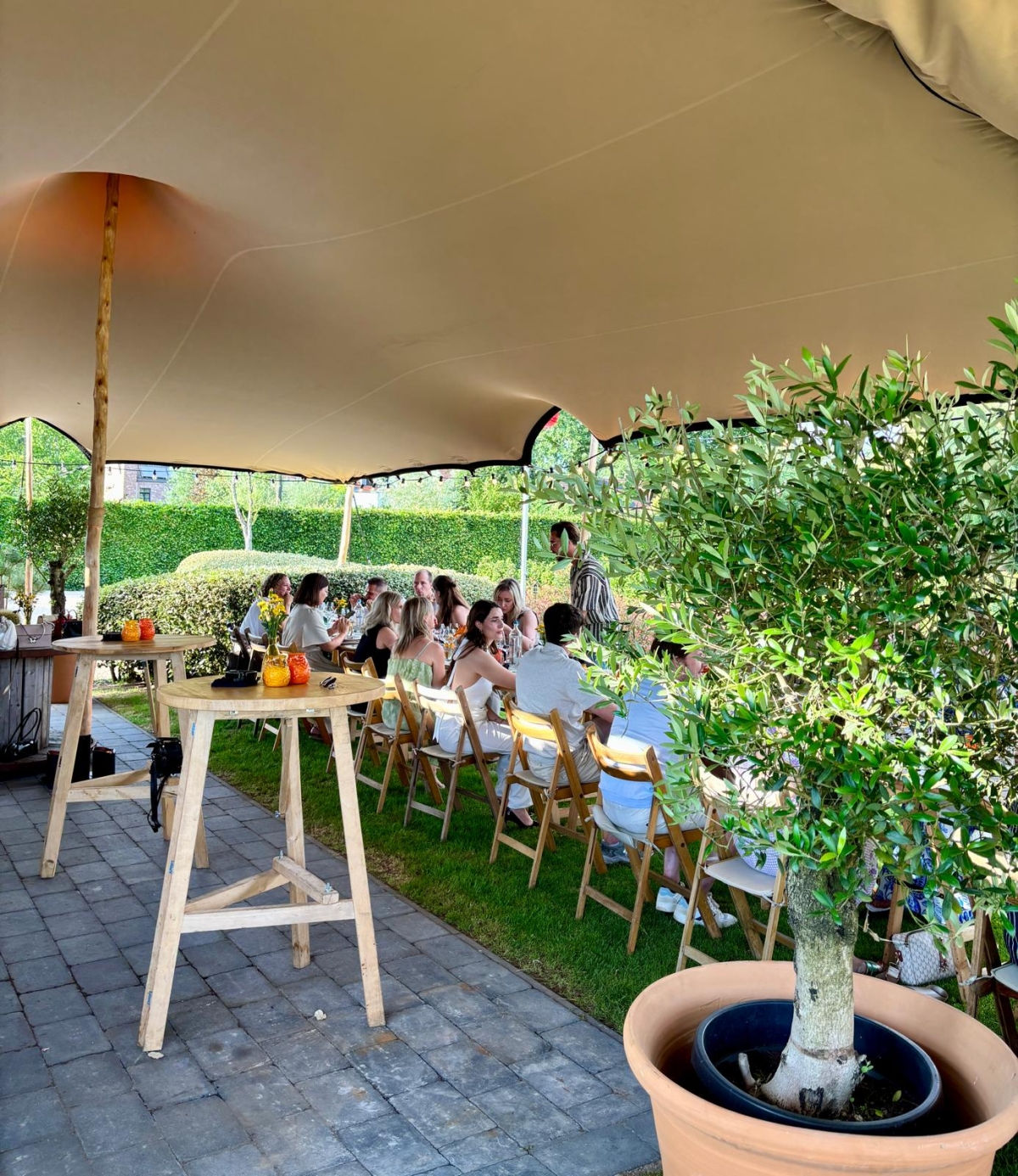 Het stijlvolle meubilair in combinatie van natuurlijke materialen met moderne accenten zorgt voor een mooie balans. M.a.w. een totaalervaring waar sfeer, comfort en karakter samenkomen. Binnen of buiten? Waarom kiezen als het beiden kan! De schuur biedt ruimte voor 35 personen. Met de sfeervolle stretchtent kunnen we uitbreiden tot 50 personen. Laat het weer geen spelbreker zijn en geniet. Gratis parking voorzien.