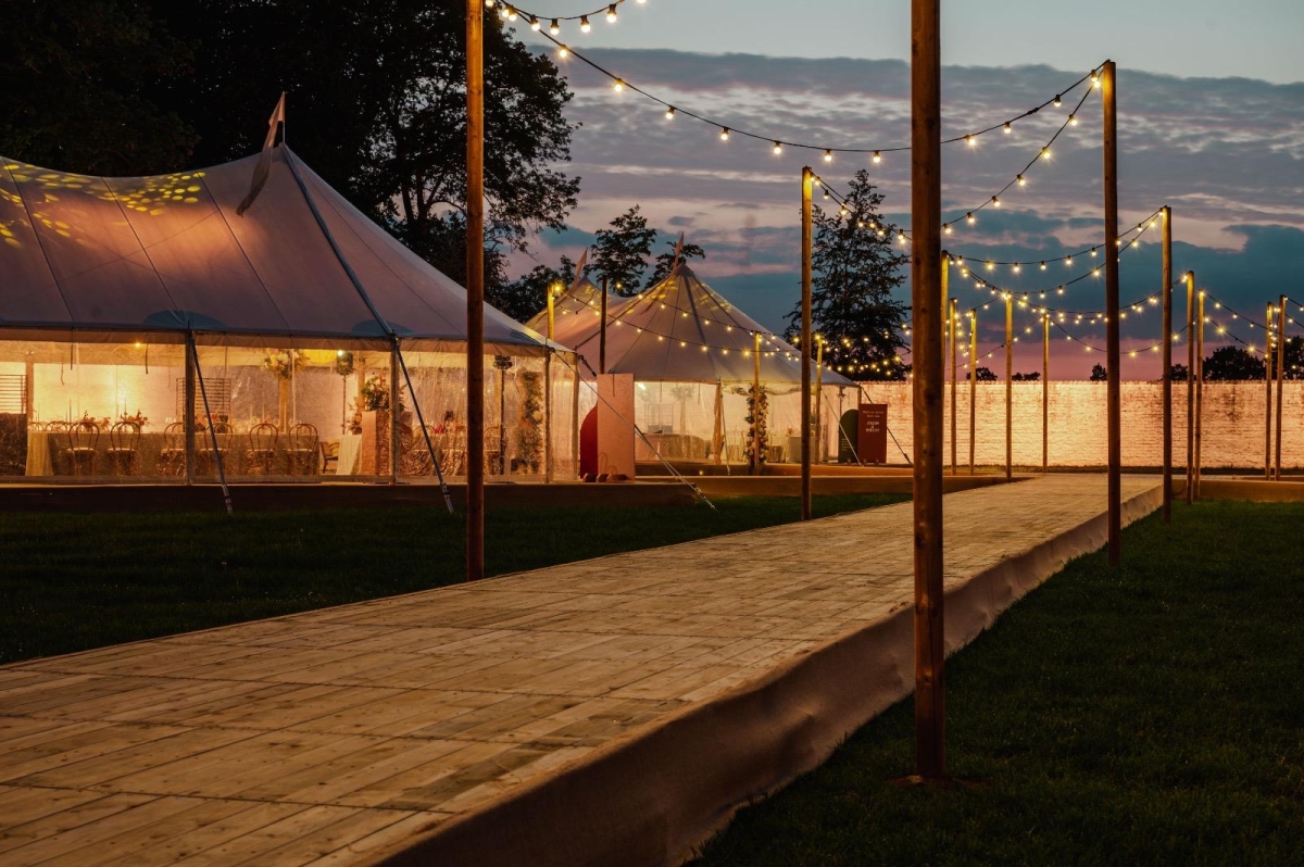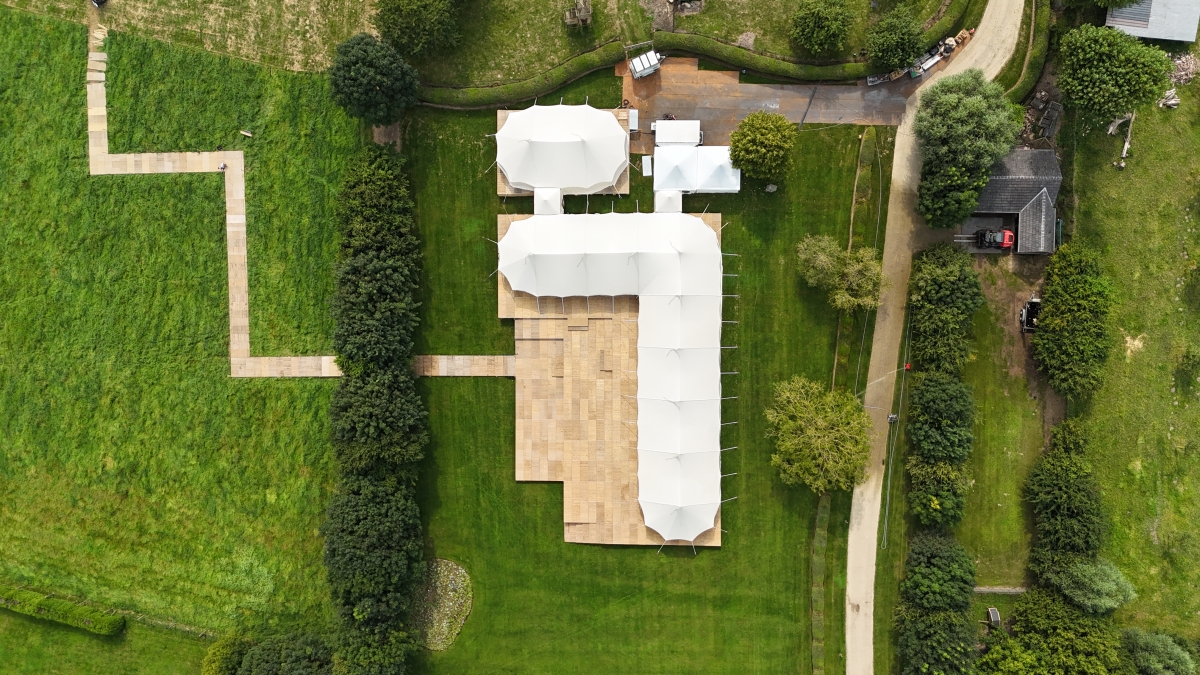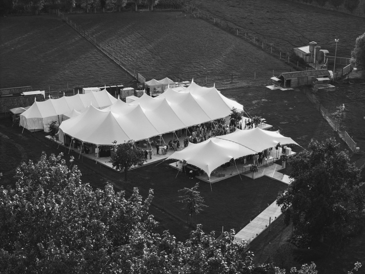 De transparante Sailcloth-variant combineert bescherming met een open gevoel en versterkt de beleving van het event, zowel overdag als ’s avonds.