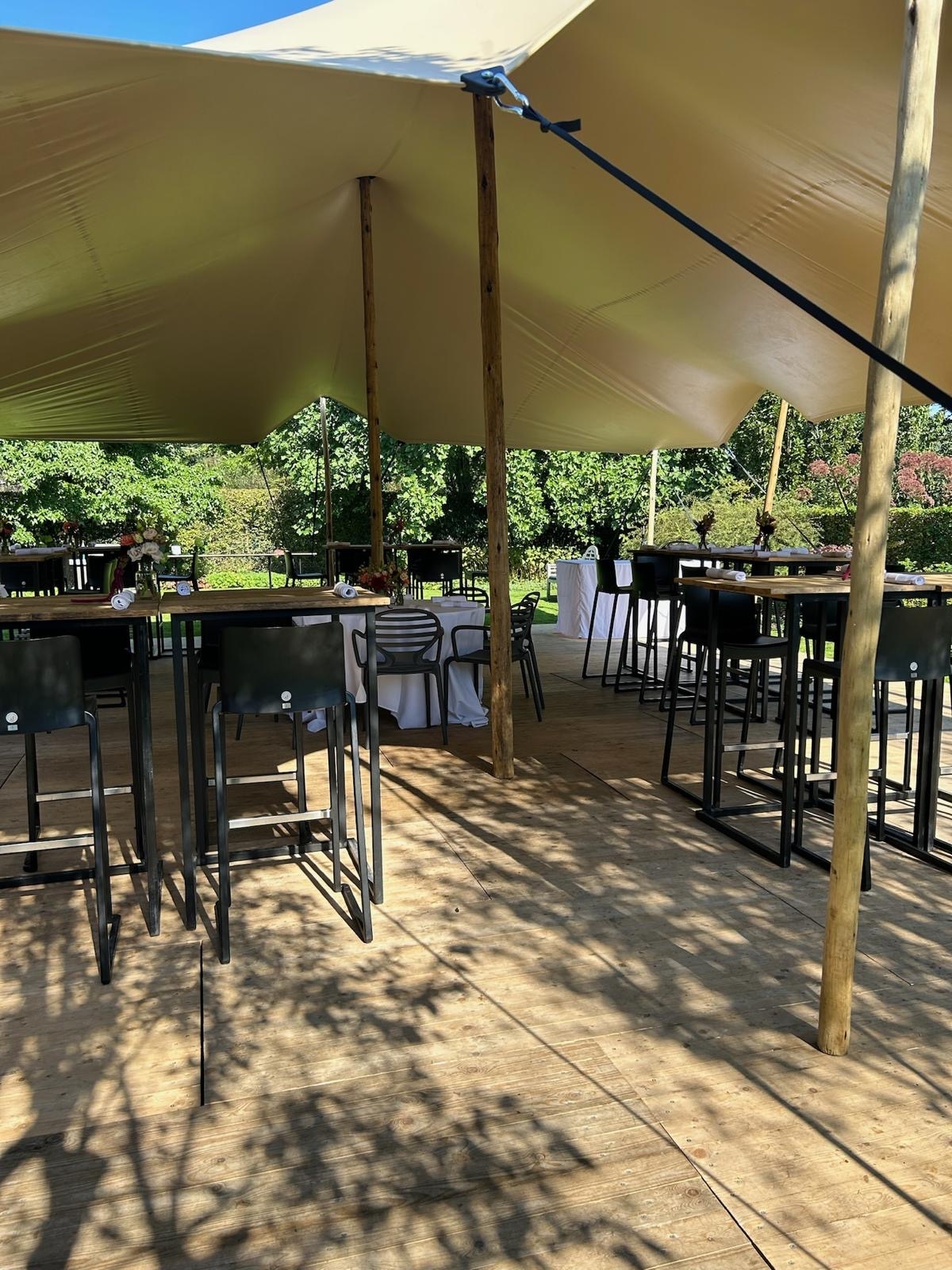 Bij onze tenten kunnen we steeds extra’s voorzien, zoals vloer of meubilair.